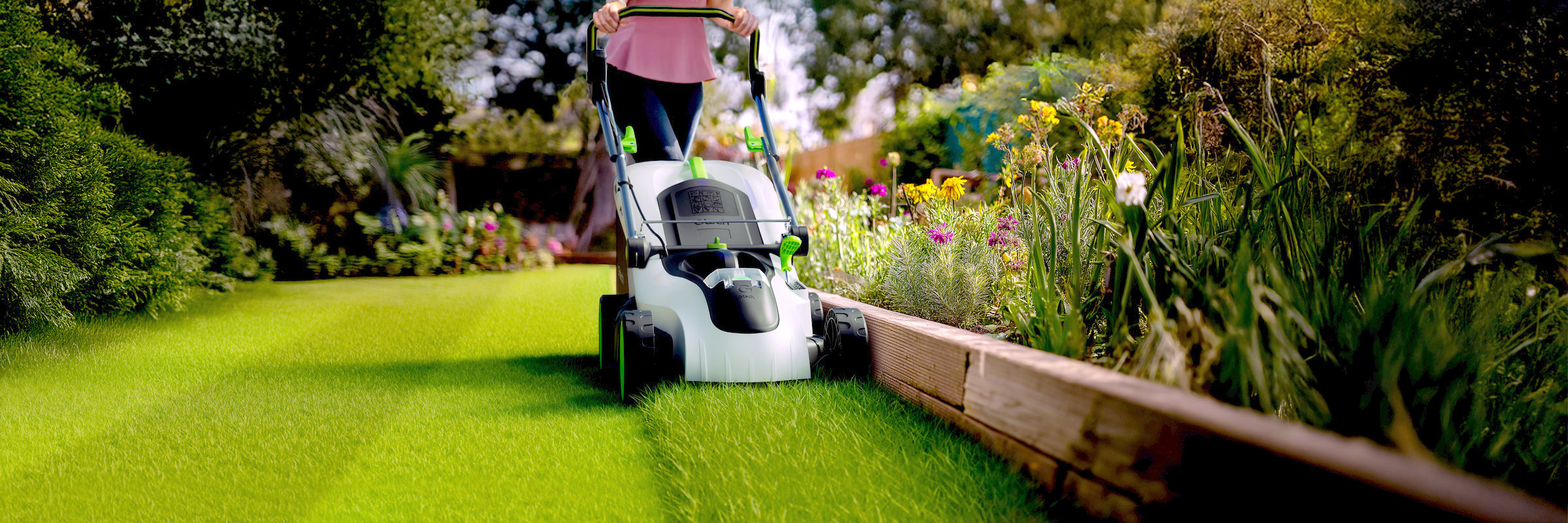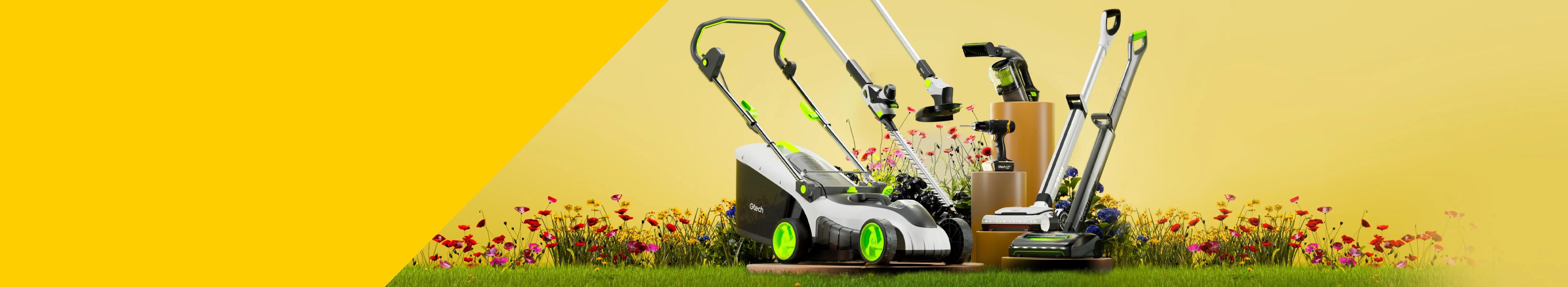 Gtech's most powerful cordless lawnmower with 40 minutes runtime, 42cm cutting width, simple push button start, and compact folding storage.