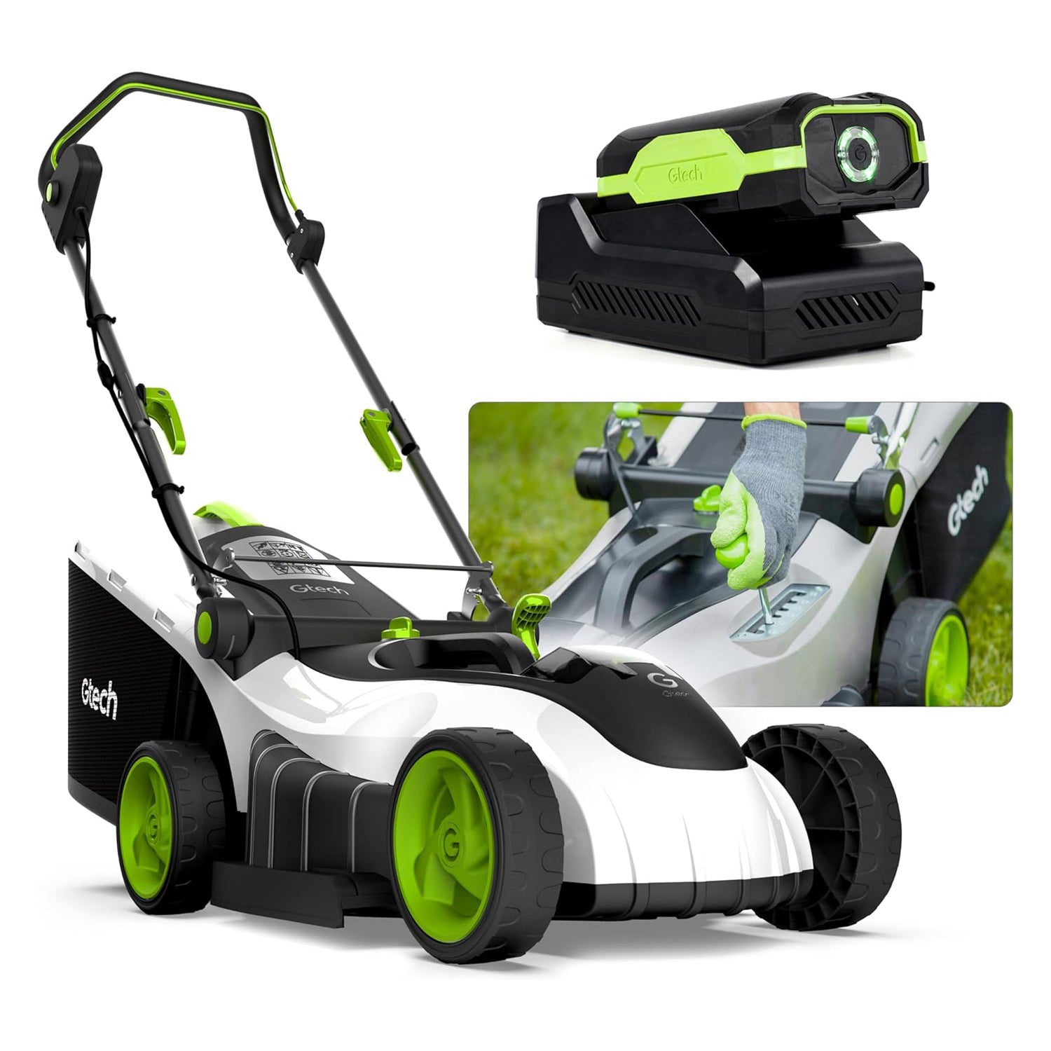 New and improved, our white-finish cordless lawnmower provides up to 40 minutes of runtime with each 1-hour charge.