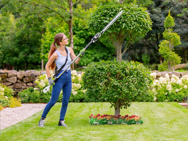 With a blade that’s 50% longer than our previous model, you can cover even more area. Easily reach up high with our ergonomically designed, Long Reach Hedge Trimmer.