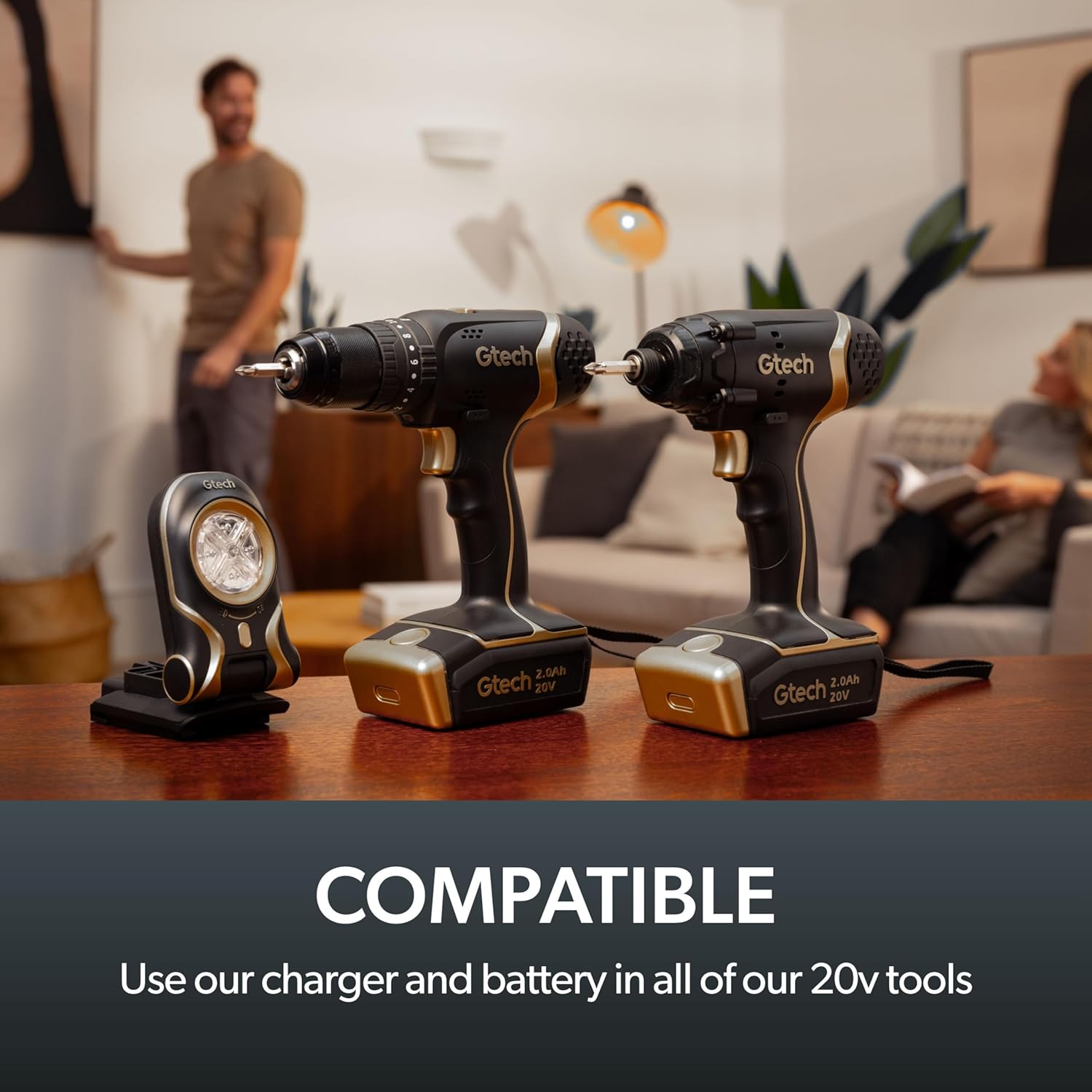 Please note: This Power Tool Charger is ONLY compatible with our Black/Gold 2Ah Power Tool Battery and interchangeable with our range of Black/Gold 20V Power Tools.
